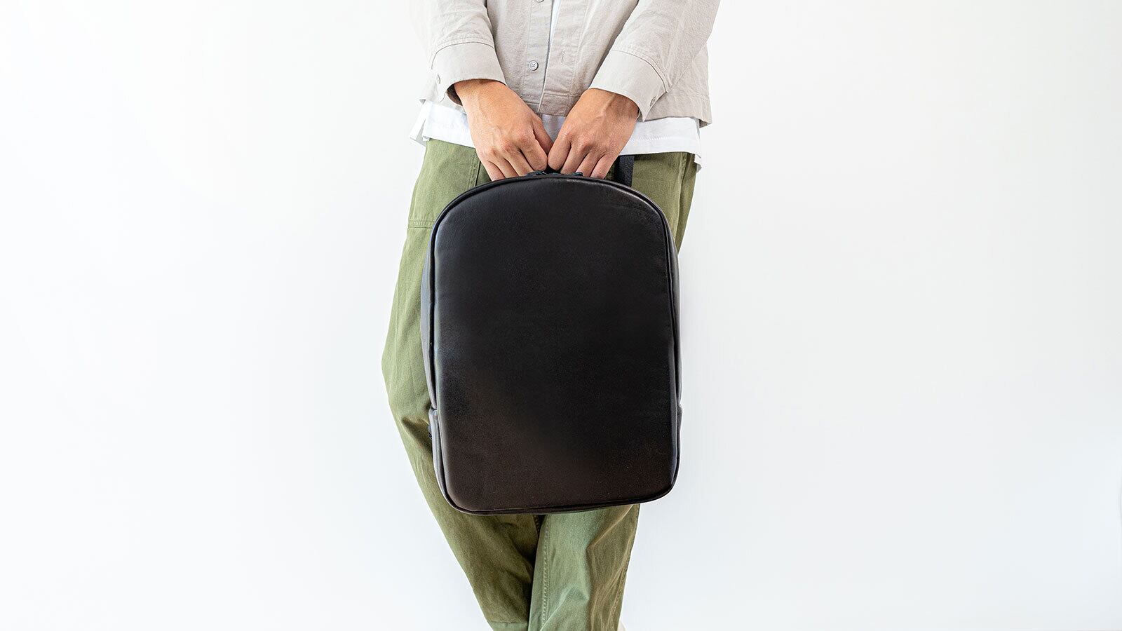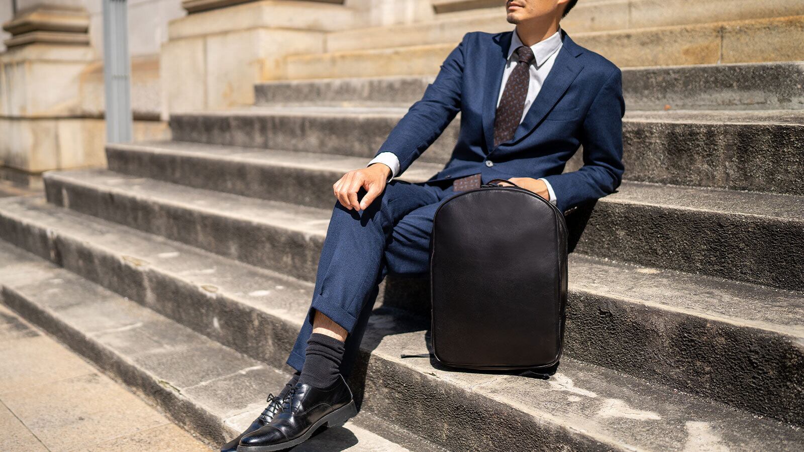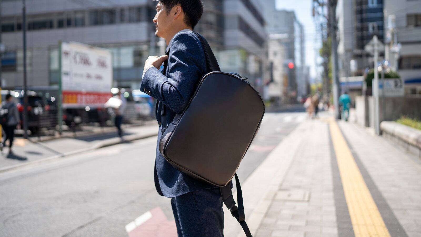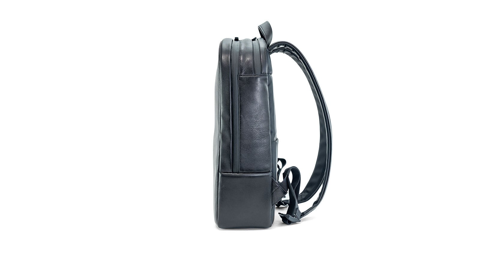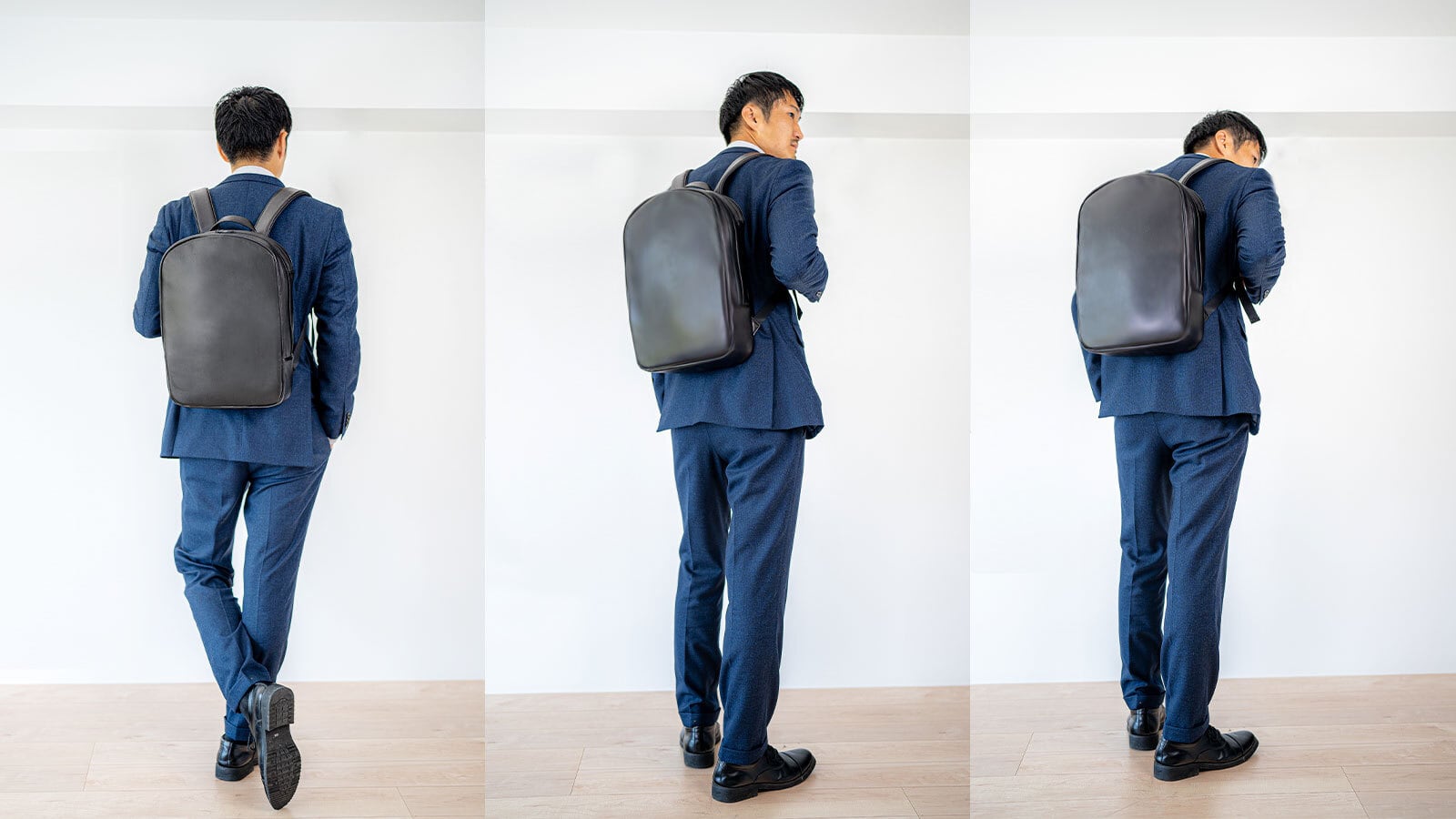 本リュックは敢えて外側の収納は取り除き、革好きな方がビジネスでもカジュアルでもご利用いただける「革メイン」のシックなデザインに作り上げました。