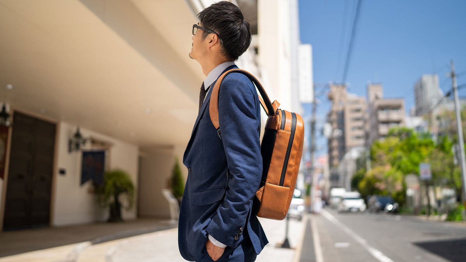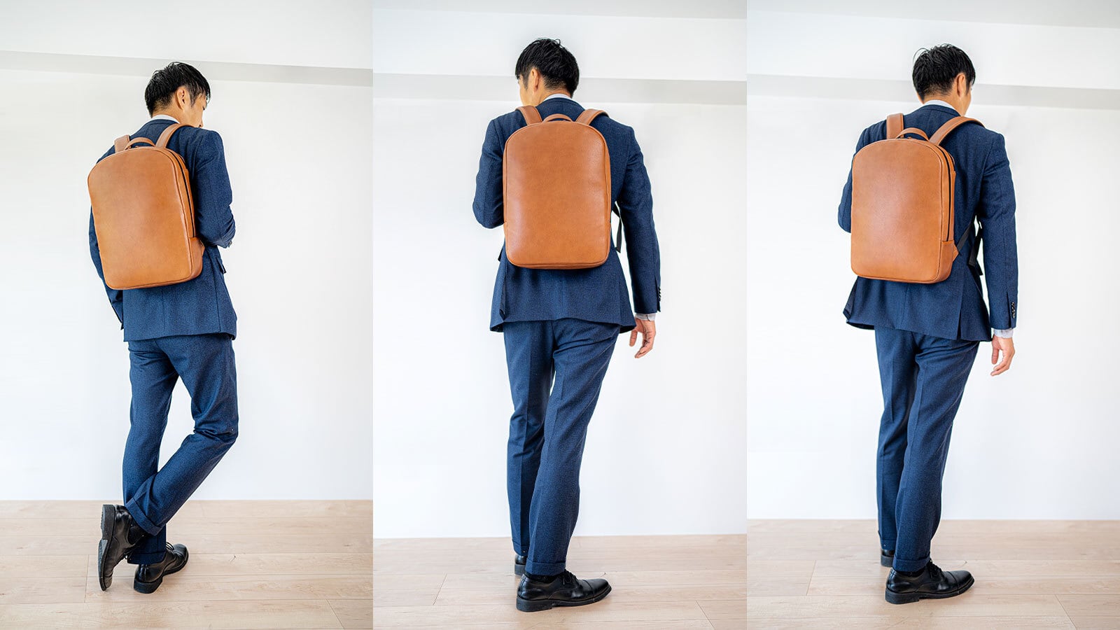 本リュックは敢えて外側の収納は取り除き、革好きな方がビジネスでもカジュアルでもご利用いただける「革メイン」のシックなデザインに作り上げました。